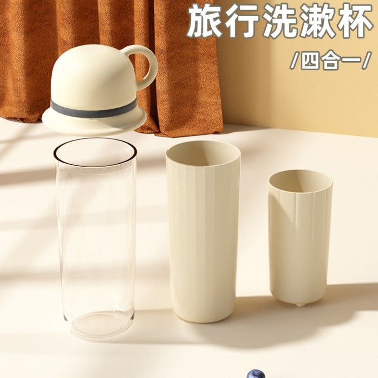 Beixilong 4-in-1 トラベルマウスウォッシュカップファミリーセットポータブルウォッシュカップかわいい歯ブラシカップウォッシュカップ