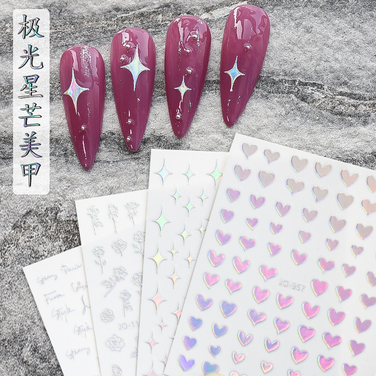 起爆ネイルステッカー星芒薔薇愛笑顔ステッカー幻彩極光ネイルステッカー