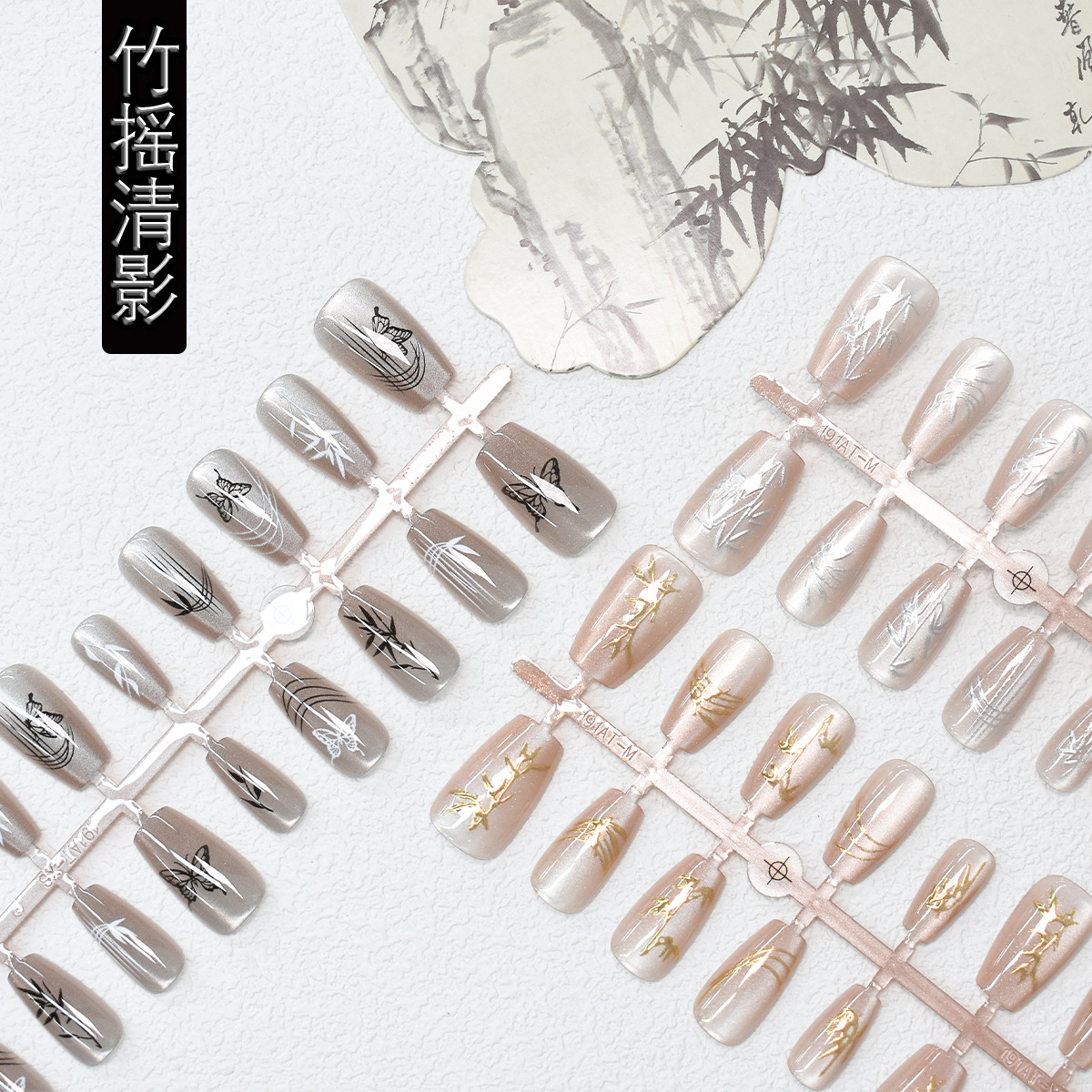 悦己の新型の高級感の猫の目は甲の金の銀の国風の竹のシリーズの偽の爪の30片を身につけます。