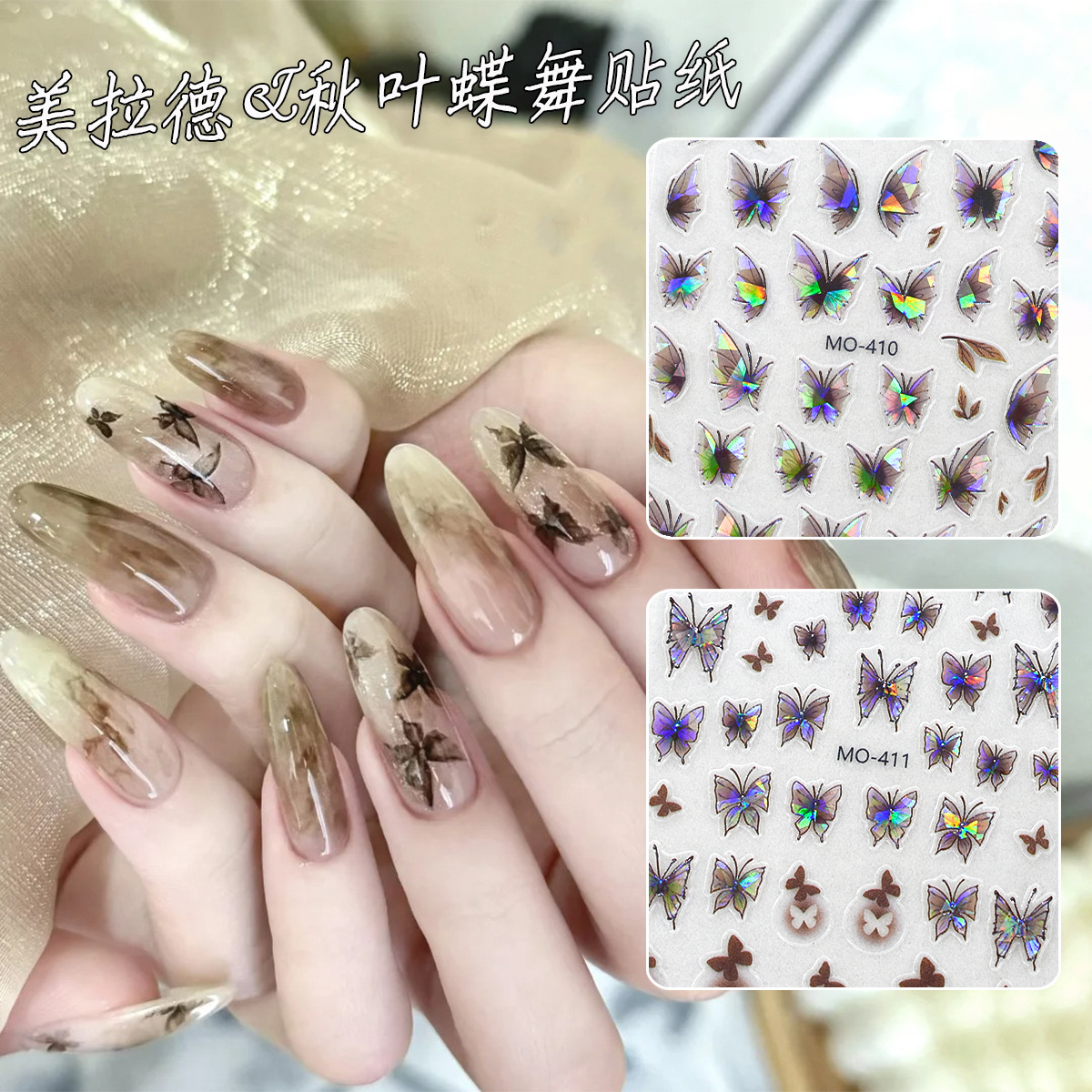 初秋の新型彩金蝶ネイルシール金秋純欲招財蝶花浮き彫りシール花卸売り