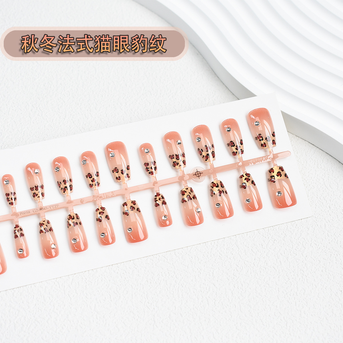 初秋の新型30枚の全コードは甲のフランス式の猫の目の豹の紋様を身につけてドリルの高級なinsネットの赤い気質のギャルの金をつけます。