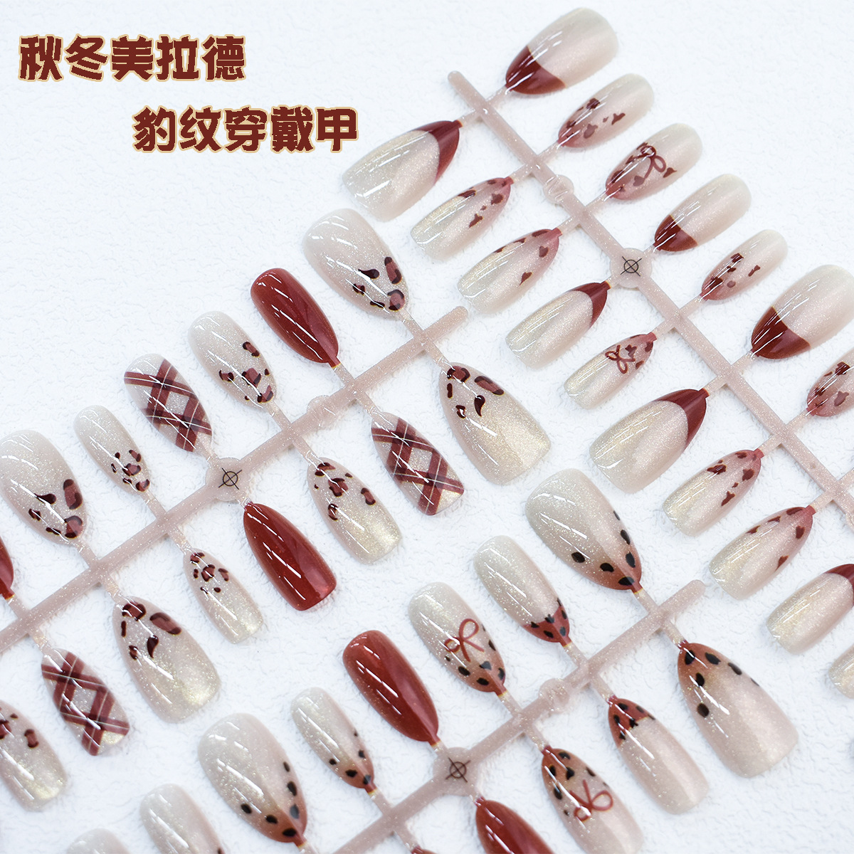 金秋の新しいセルフサービスのネイルの赤いフランスの猫の目のヒョウの紋様は甲のギャルの風を身につけて爪の甲の切れを取り外します。