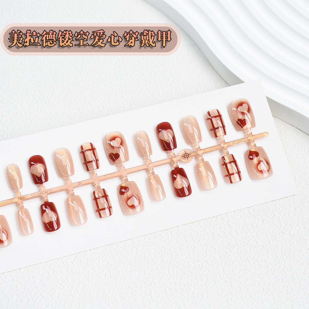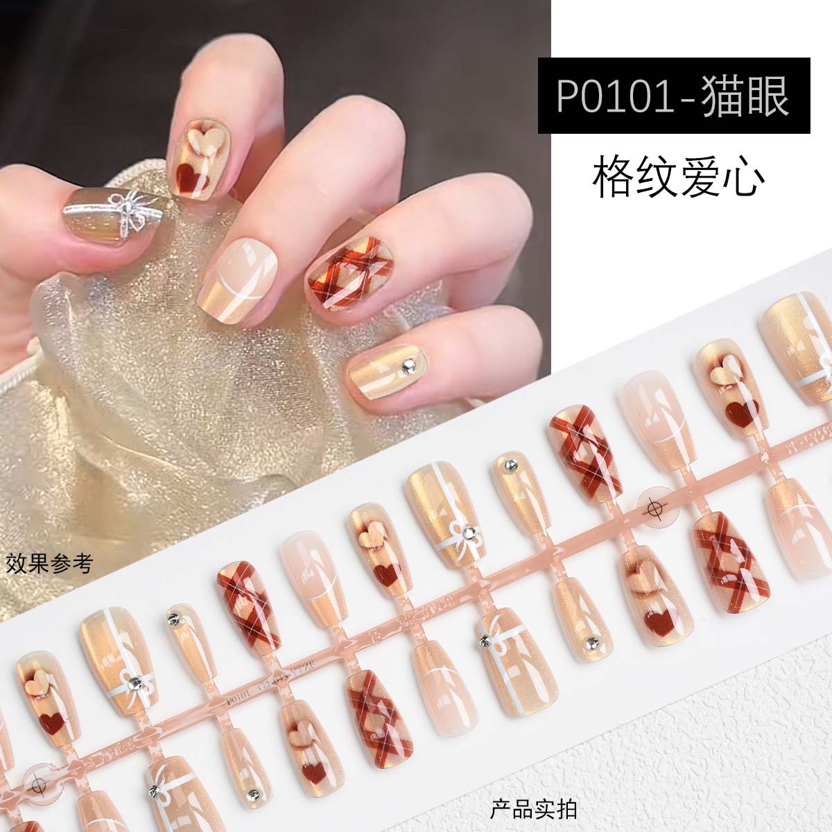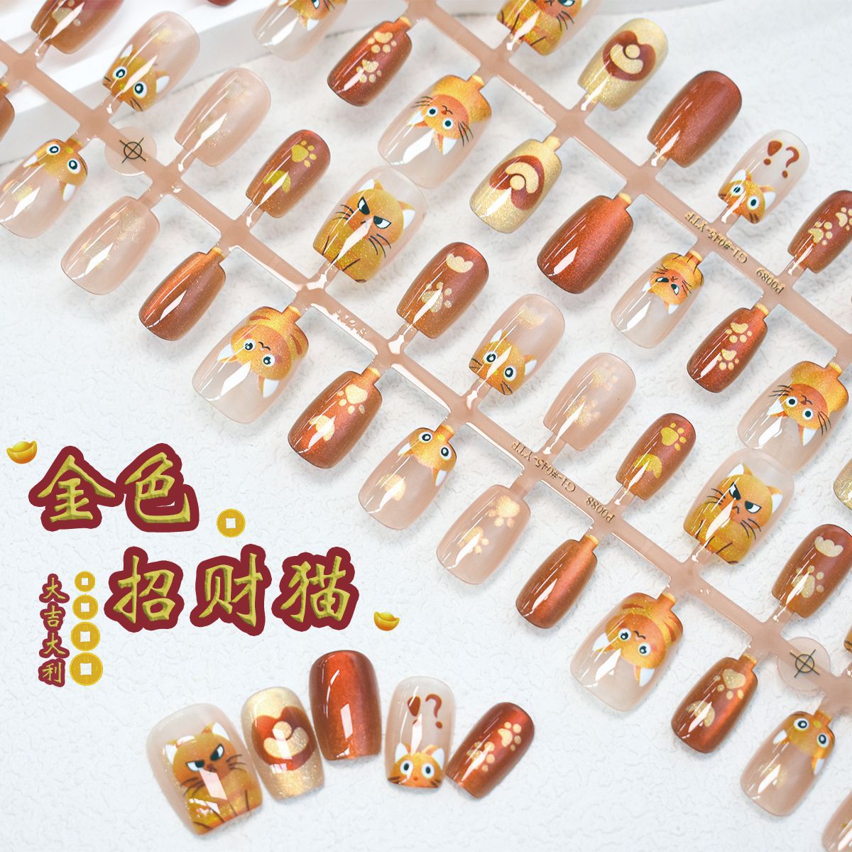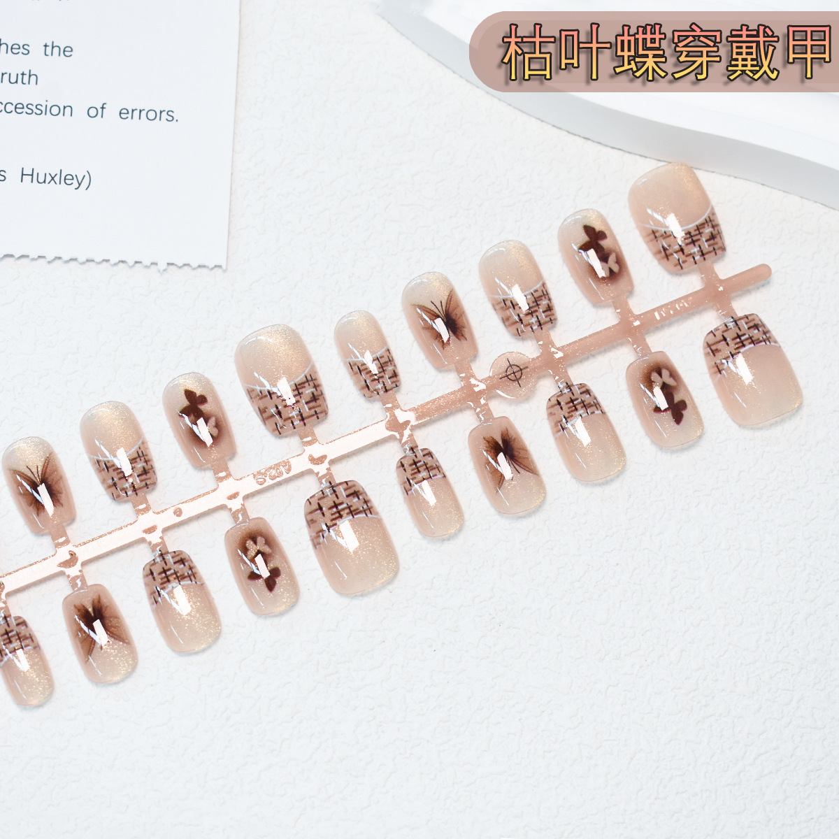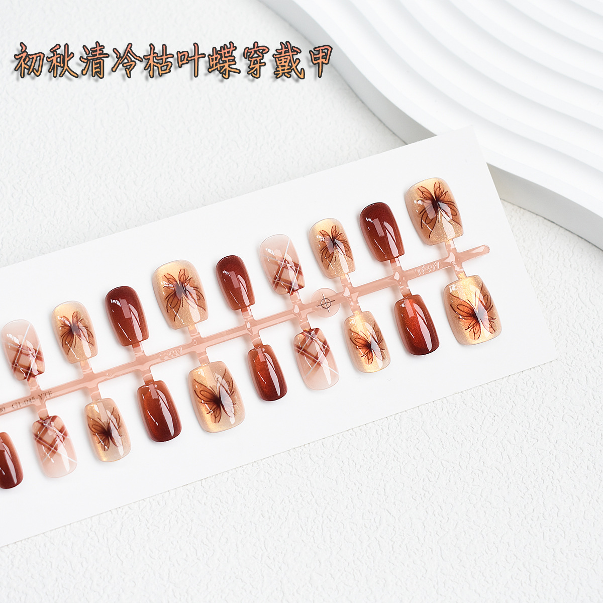 秋冬新作美拉徳清冷風枯葉蝶猫眼装甲甘レトロショートネイルセルフネイル