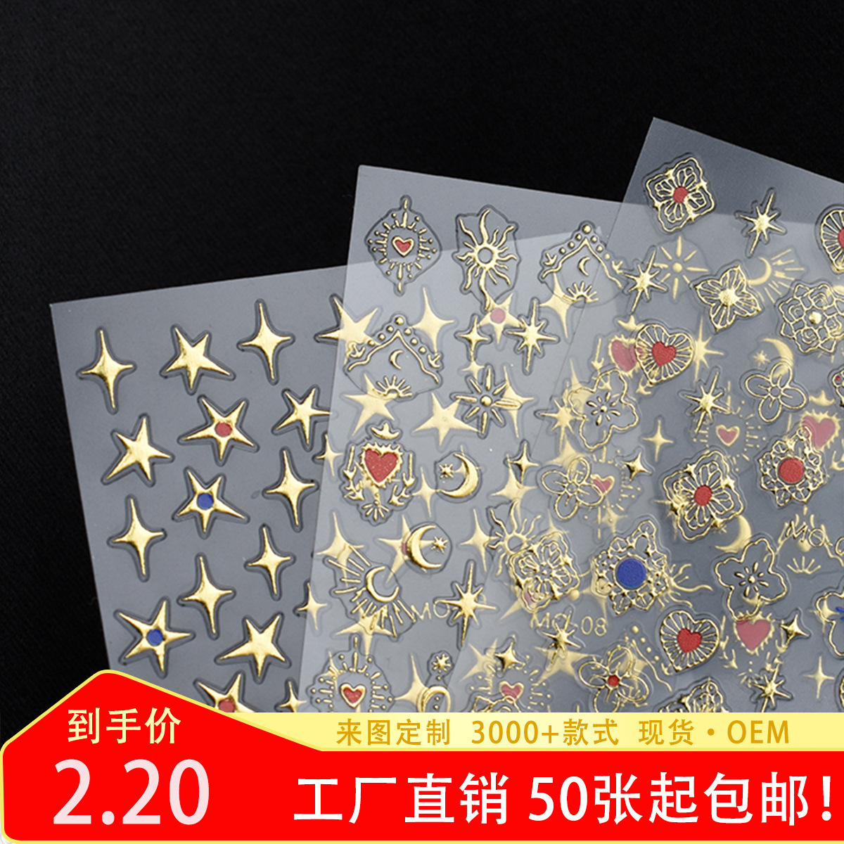 現物ボヘミアン風布契拉提ネイルシール金色箔押し五角星爪デカール卸売り