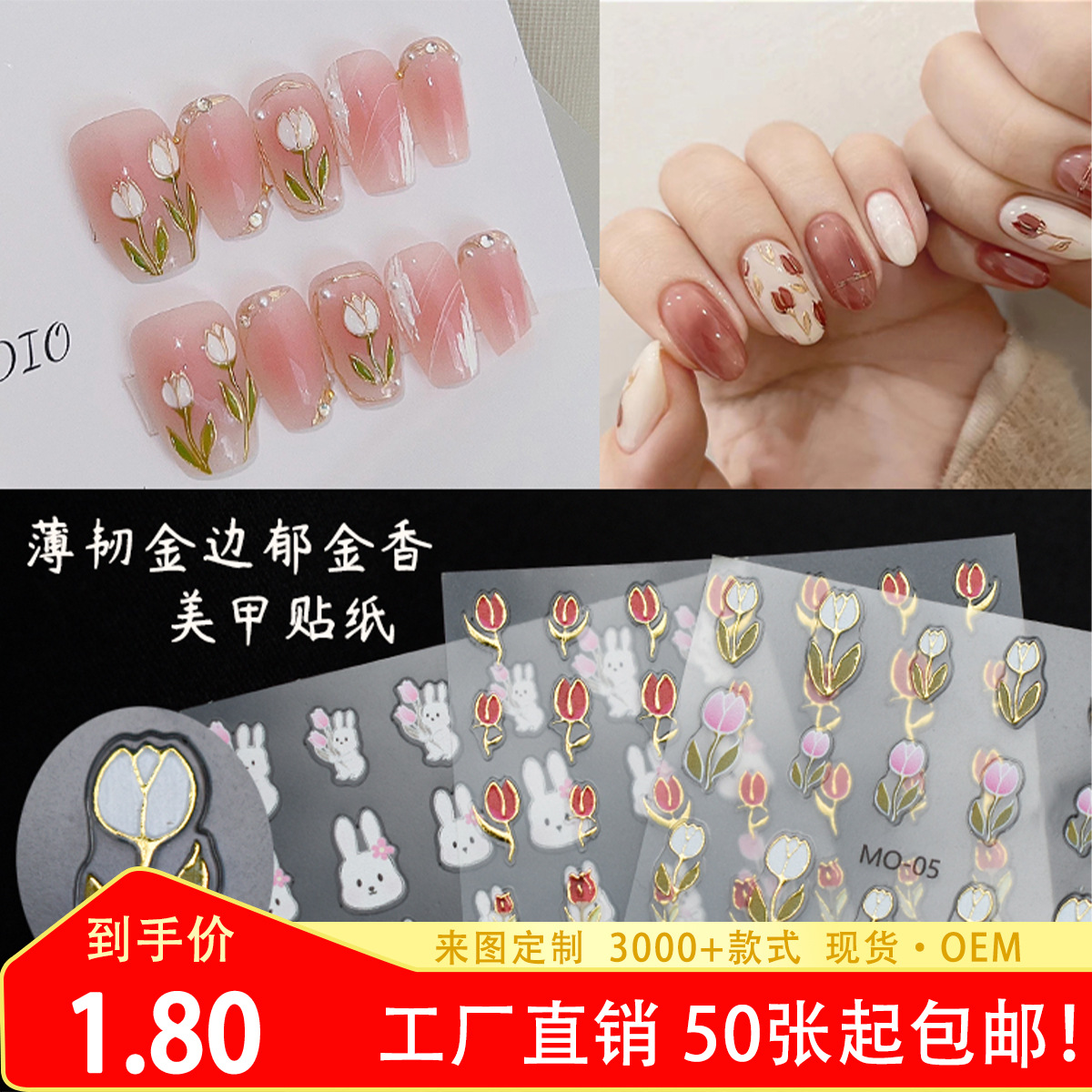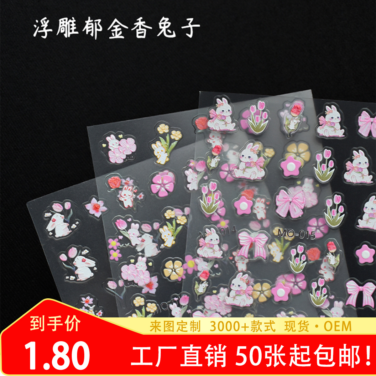 Mosrチューリップネイルステッカープノンペン花爪アップリケチューリップウサギ装饰小さなパターン5dレリーフ
