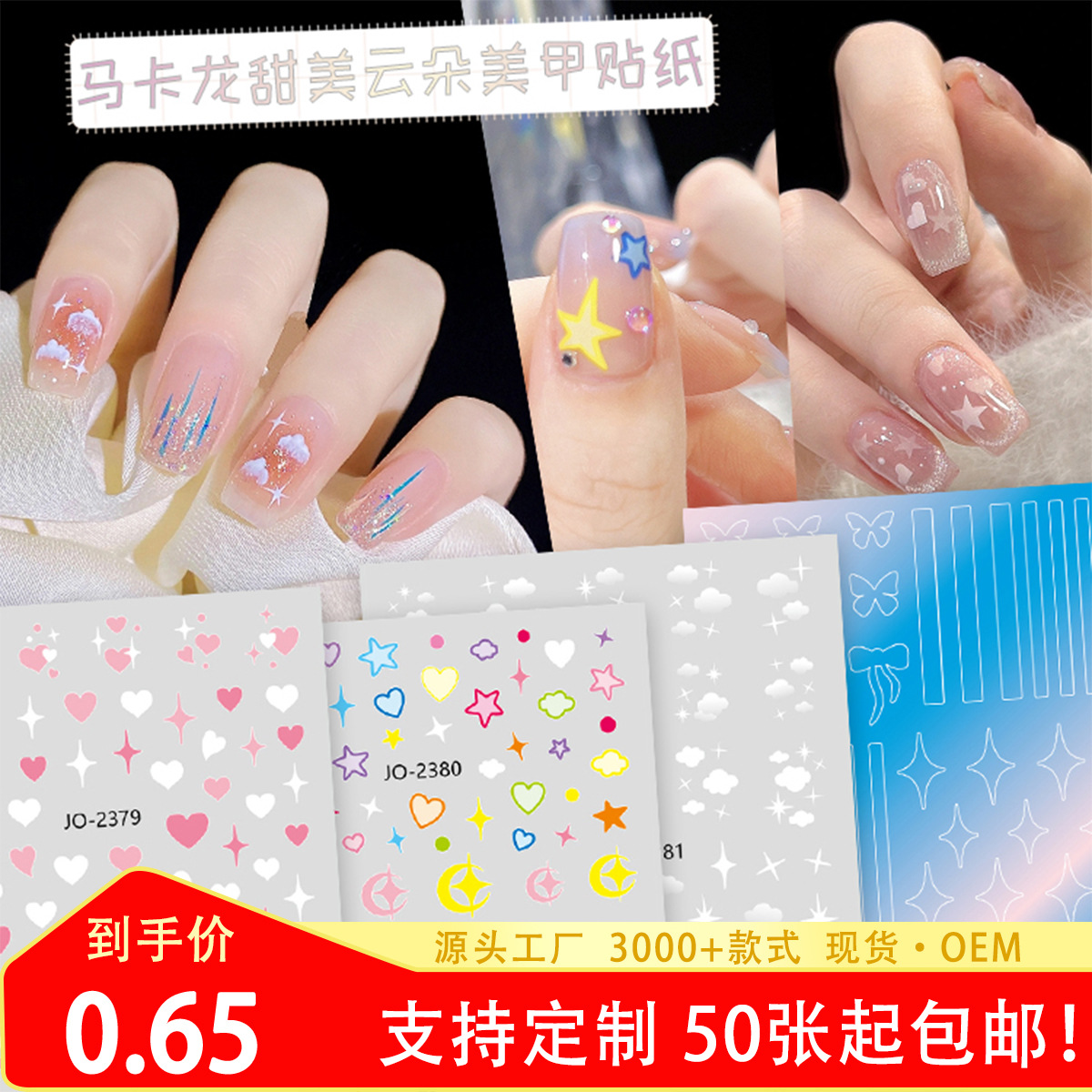 ネットレッドネイルシール浮き彫りマカロン月星モカ星芒平底ドリルアクセサリーカラーネイルシール