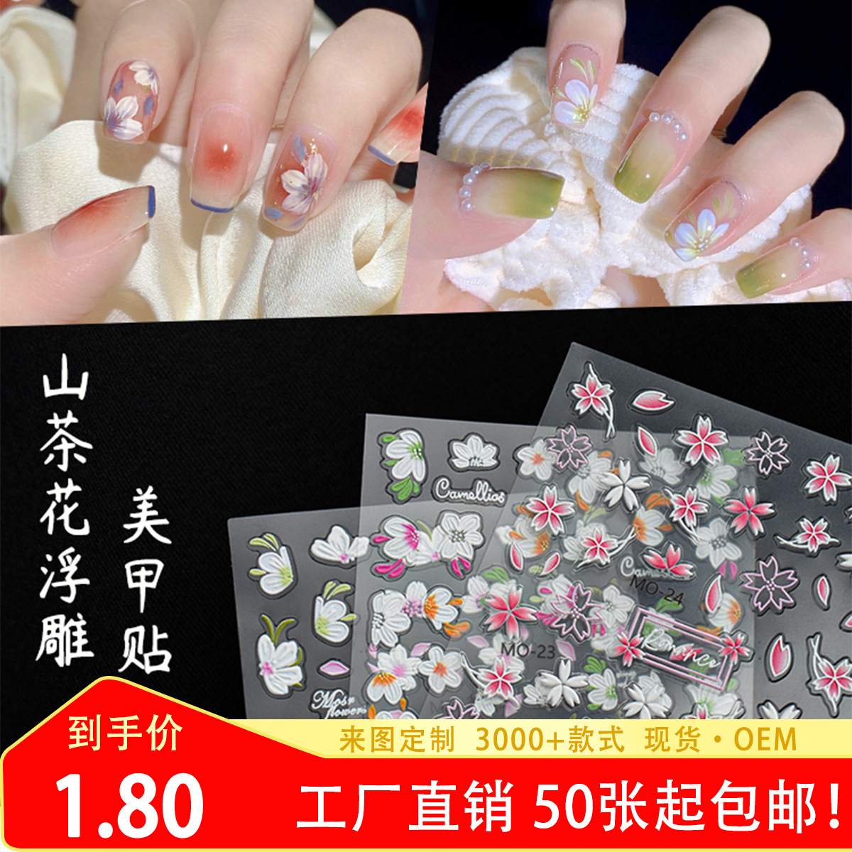 レリーフネイルステッカー5D立体ツバキの爪ステッカー桜五弁花装饰小さなパターンネイルステッカー