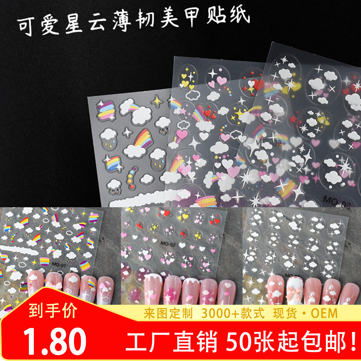 薄靭虹星雲愛ネイルシール夢のチーク5Dデカール装飾小模様ネイルシール