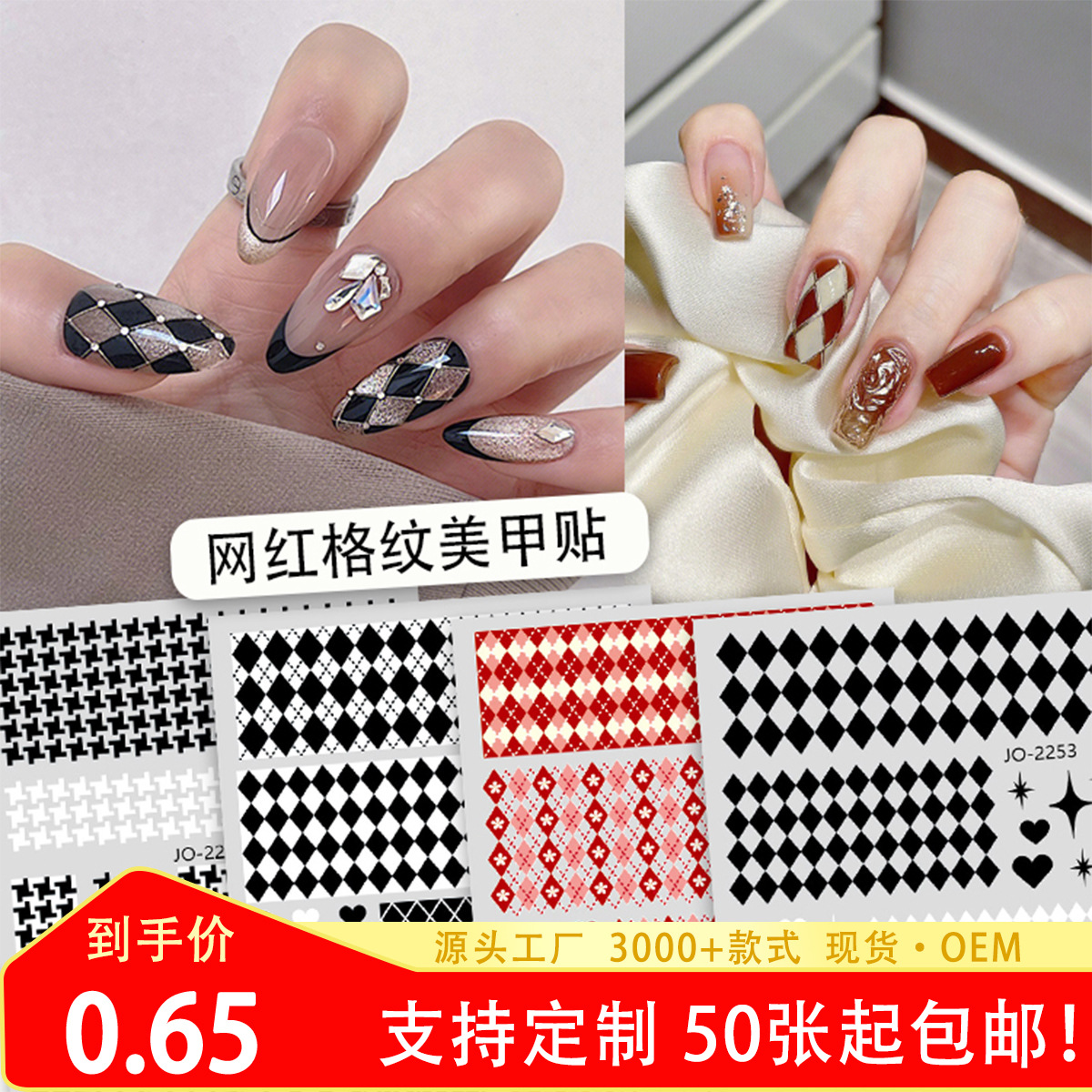ネットの赤い爆発のダイヤモンドの紋様のネイルシールの幾何学の抽象的な格子のネイルアートの素材の爪のデカールミックス