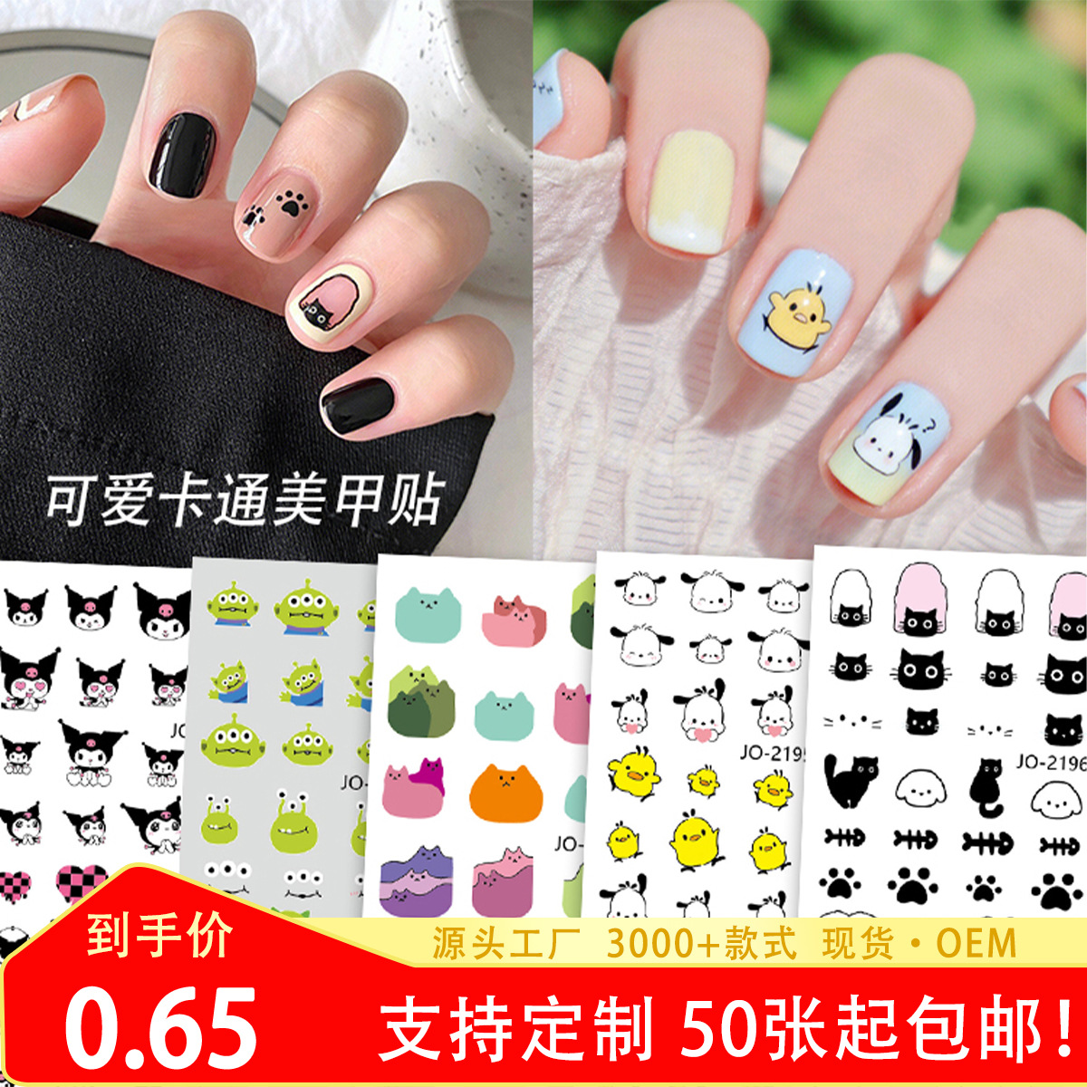 Mosr漫画パンダネイルステッカー5d立体かわいい風装飾小さなパターン粘着性レリーフ爪ステッカー卸売