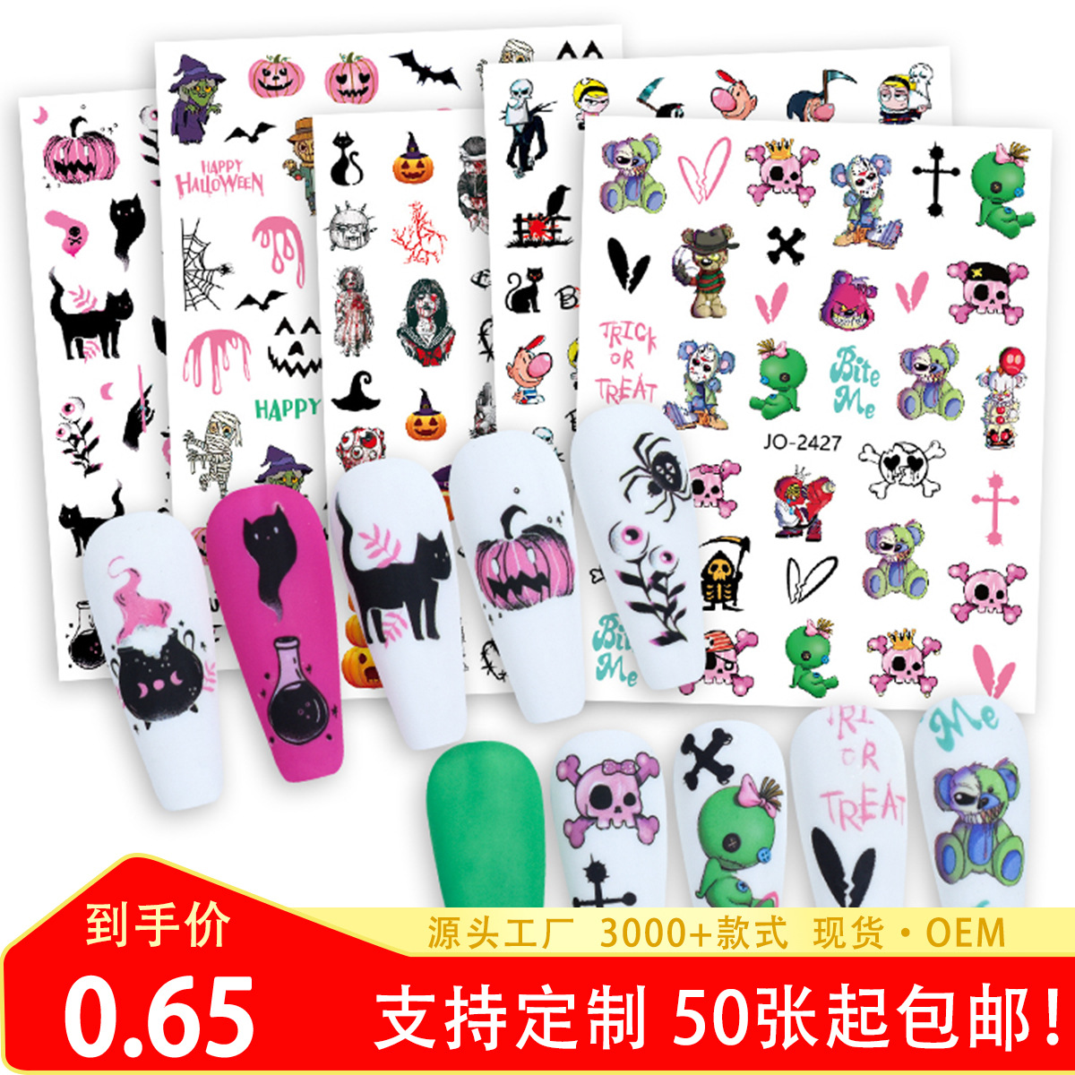 ハロウィーン爪シールかわいい頭蓋邪悪な真っ赤な表情バッグ落書き表情装飾ネイルシール