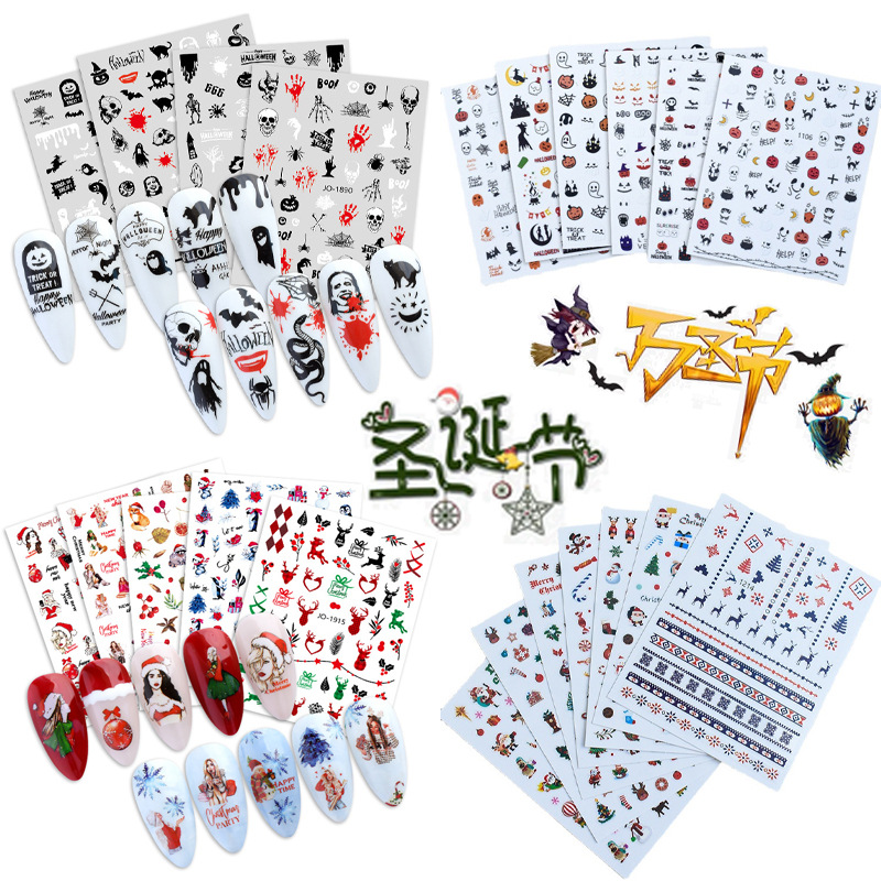ハロウィンネイルステッカー クリスマスネイルステッカー サンタクロース パンプキンヘッド 小悪魔ネイルステッカー バックストリップ接着剤