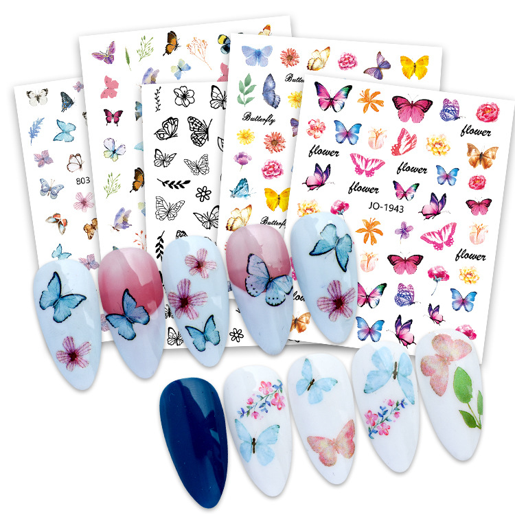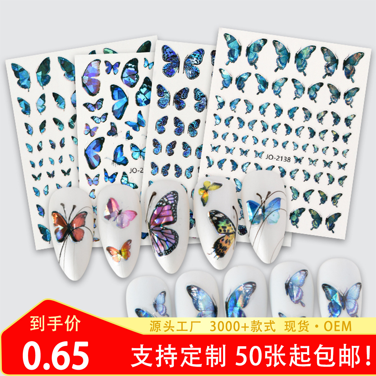 2022新しいカラー蝶ネイルステッカー卸売ins风爪小さなアクセサリーデカール3dバック接着剤爪ステッカー
