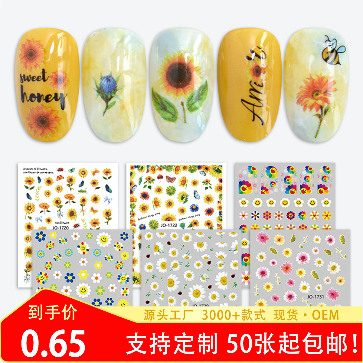 国境を越えて人気のひまわりネイルシール笑顔ネット赤かわいいデイジーネイルバックゴムのデカールセット