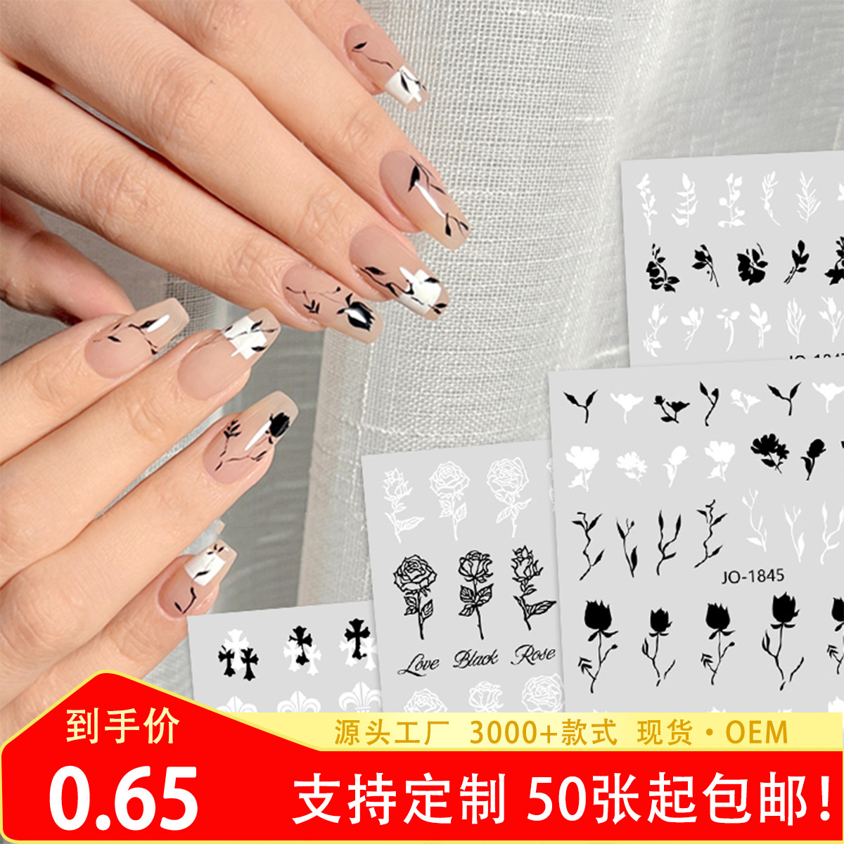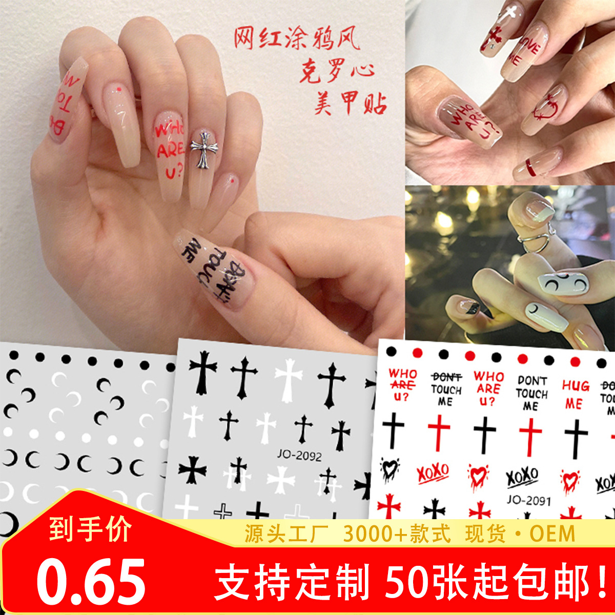 クロハートクロス爪シール卸売り手描き暗黒乾燥薔薇デカール国風ネイルシール