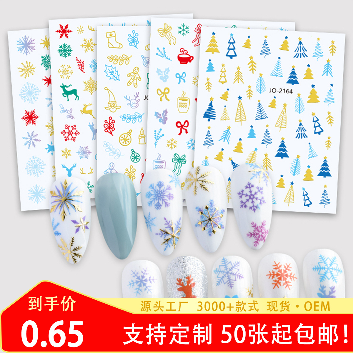 ネイルアート超薄型バックゴム3Dシール日系秋冬雪花カラー箔押しクリスマスヘラジカ爪デカール