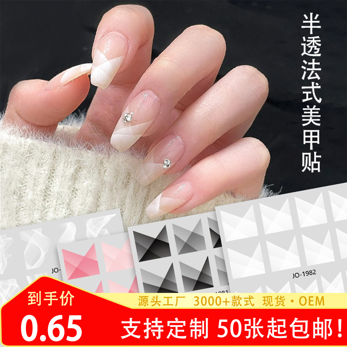フレンチグラデーションネイルシール卸売りフレンチスポンジ半透格子縞高級モデル白黒煙優しい爪貼り