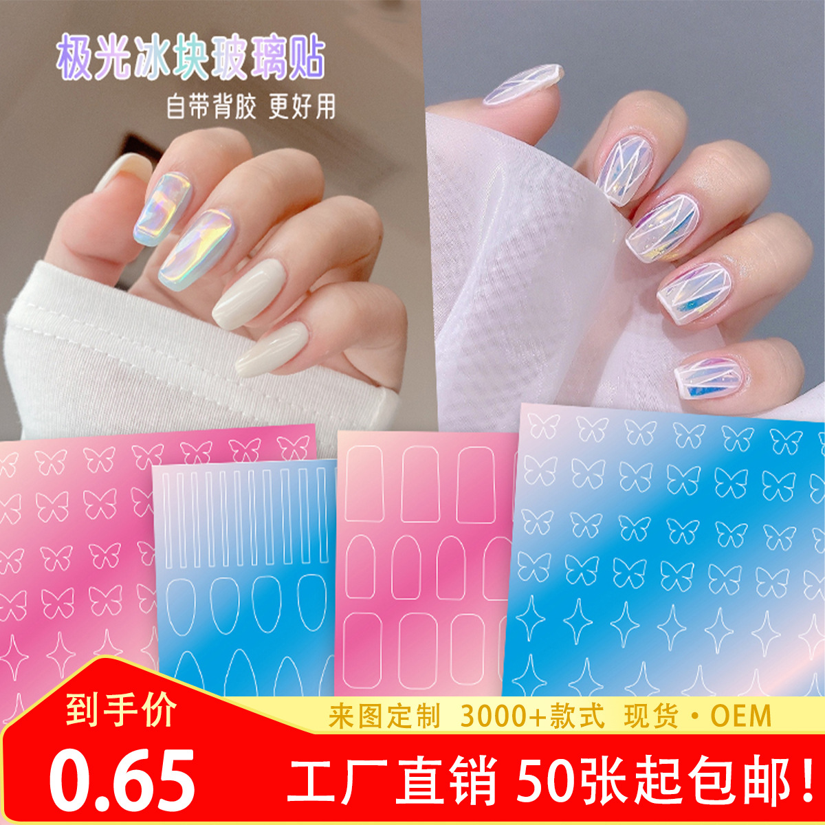新しいアップグレードの極光の氷のガラスの紙のネイルアクセサリーのまぶしい蝶の星の水滴はゴムの爪の装飾をつけて貼ります。