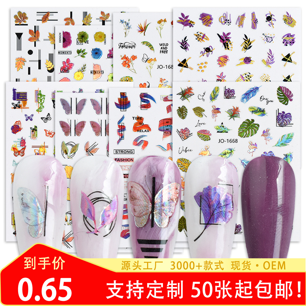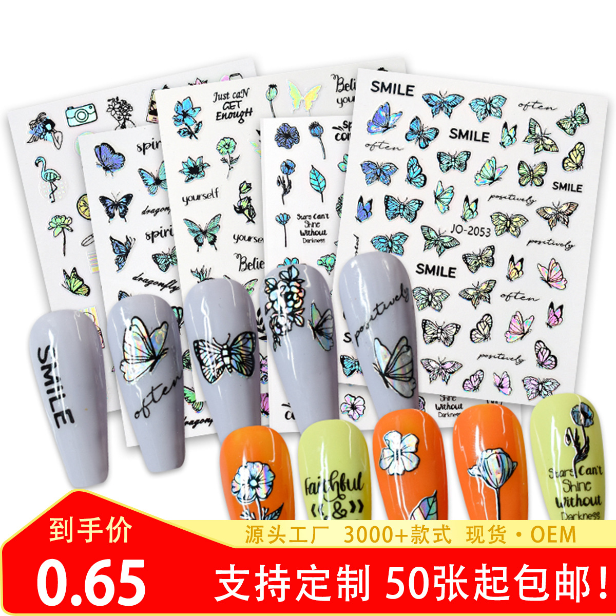 対外貿易金レーザー幻彩ネイルシール皮膚蝶草花果物シリーズ3d爪装飾小模様