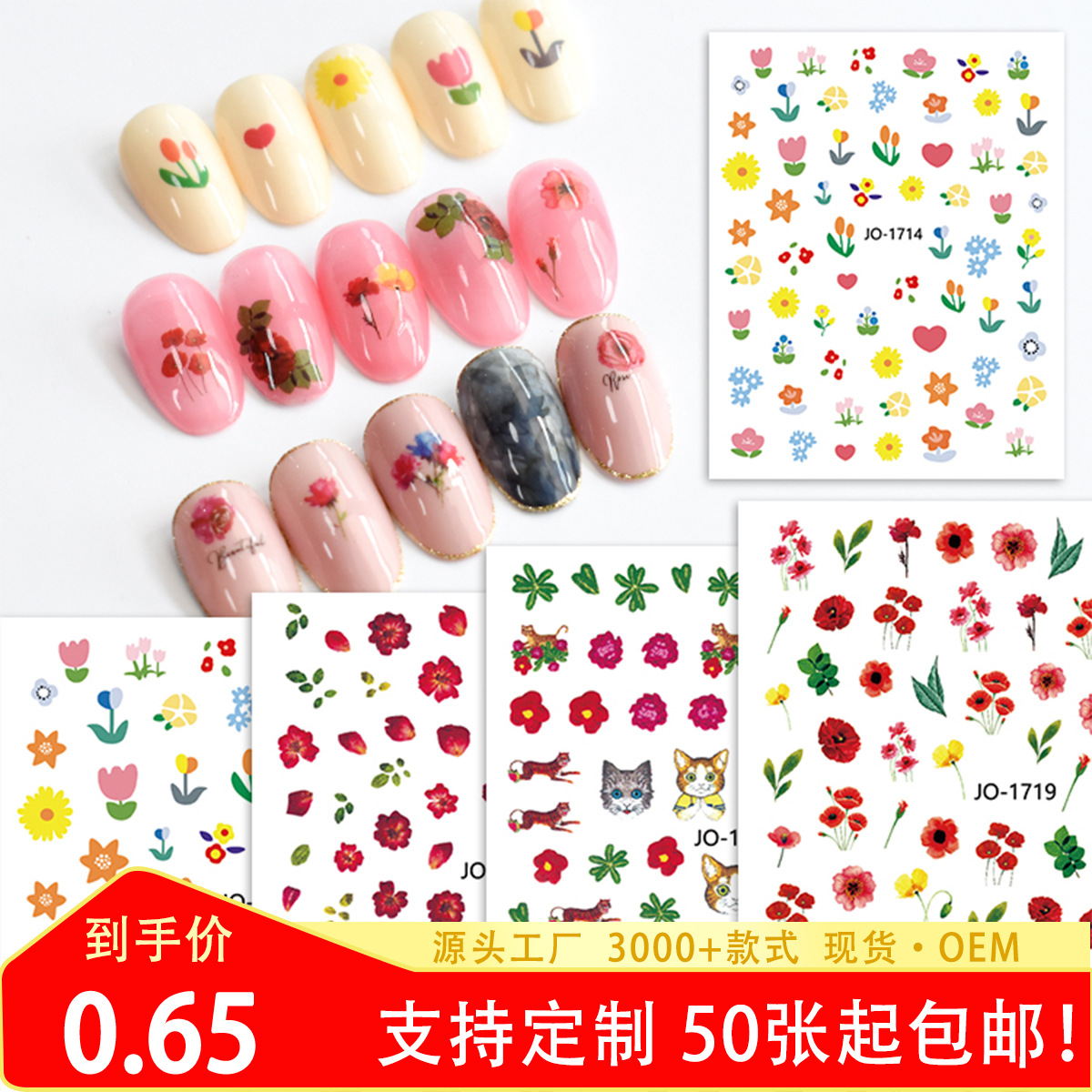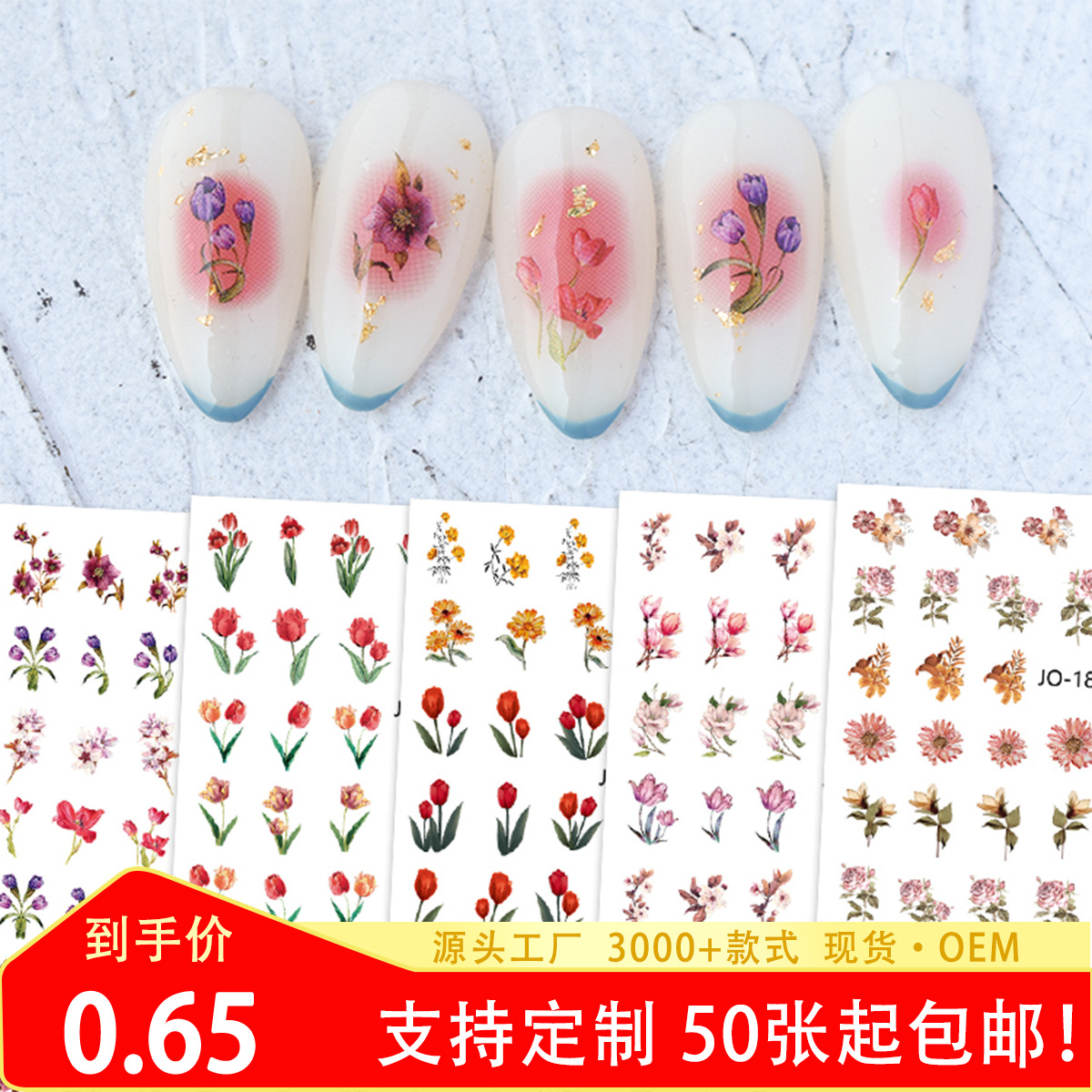 2022春の花ネイルステッカーネット赤チューリップネイルステッカーローズドライ花ピンク少女ネイルステッカー