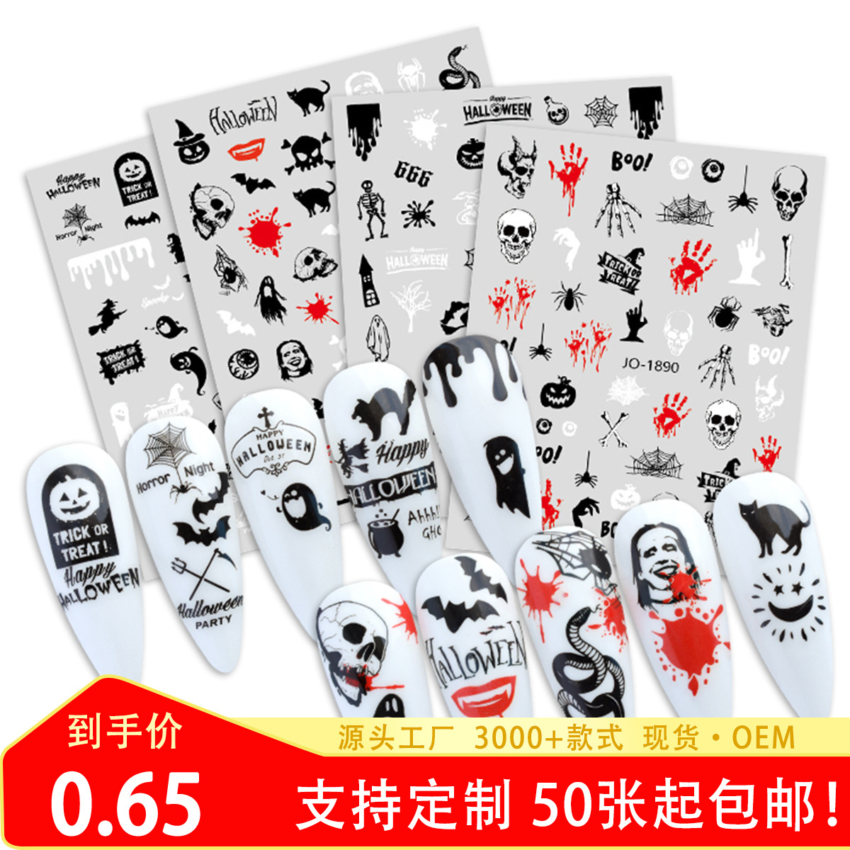 万聖シリーズのネイルシールが国境を越えて人気のあるスカルの万聖ネイルシール漫画が白黒ネイルシールを奇妙にしている