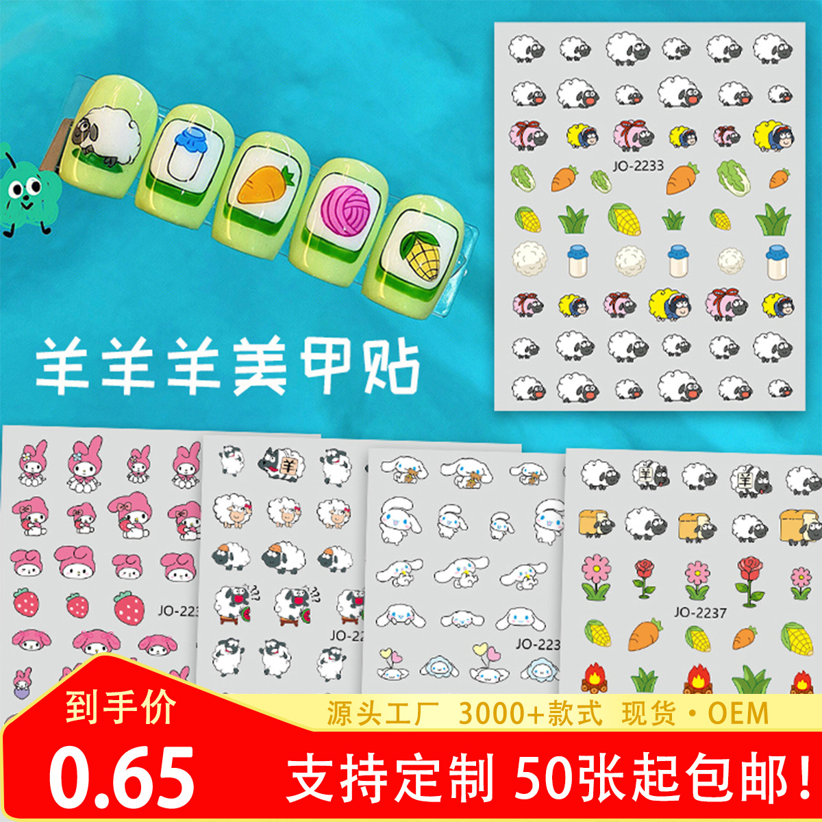 羊は羊のネイルシールを混ぜてアニメの子羊の玉桂犬の指の3d甲の装飾の小さい図案を作って花を貼って卸売りします。