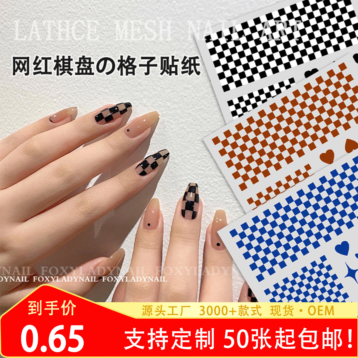 ネット赤爆金白黒盤美甲貼り紙網格紋透かし彫りアニメかわいい超薄バックゴム爪貼り花