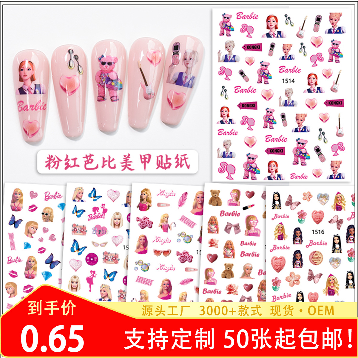 悦己の新型ネット赤バービー粉美甲貼り紙網赤熊かわいい対外貿易風クロスボーダー卸売り爪貼り
