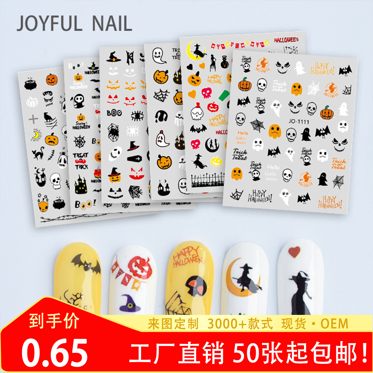 人気のハロウィンネイルステッカー 南洋風パンプキンとスカルの防水ネイルステッカー ネイルデコレーション用小柄