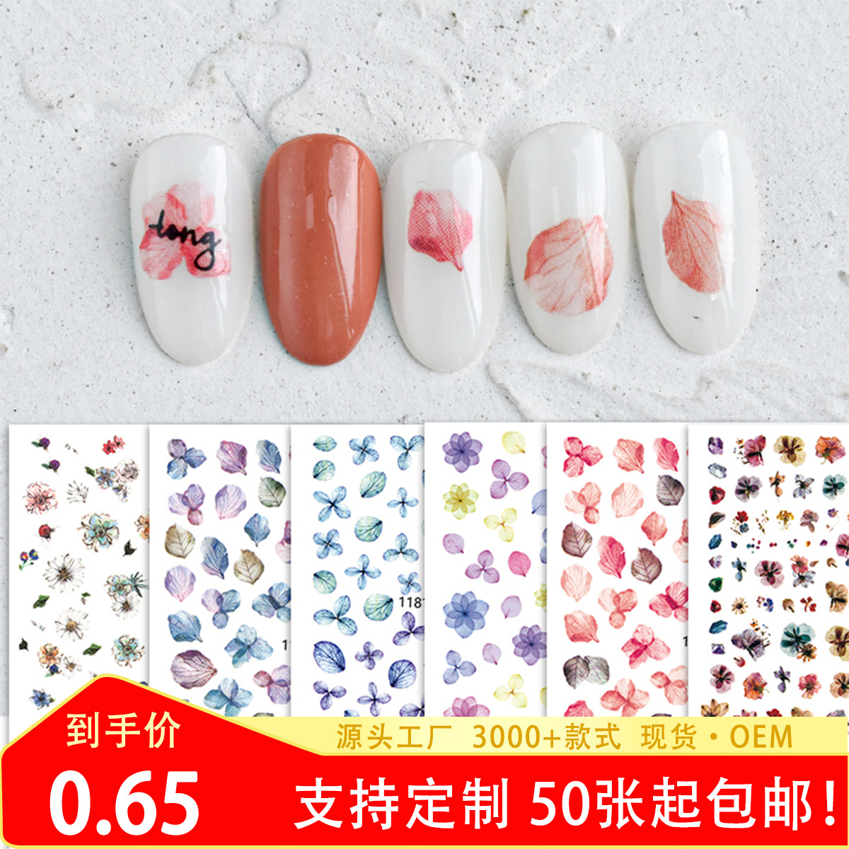 秋の新しいネイルアート花シール水墨シリーズins花びらドライ花バックネイルアート装飾シール