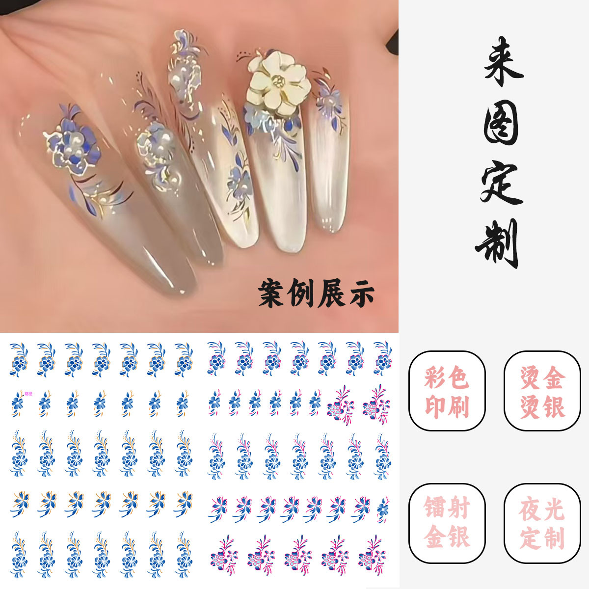 工場カスタム3D自己接着ネイルシールOEM ODMカード代行小ロット生産ネイルシールカスタム