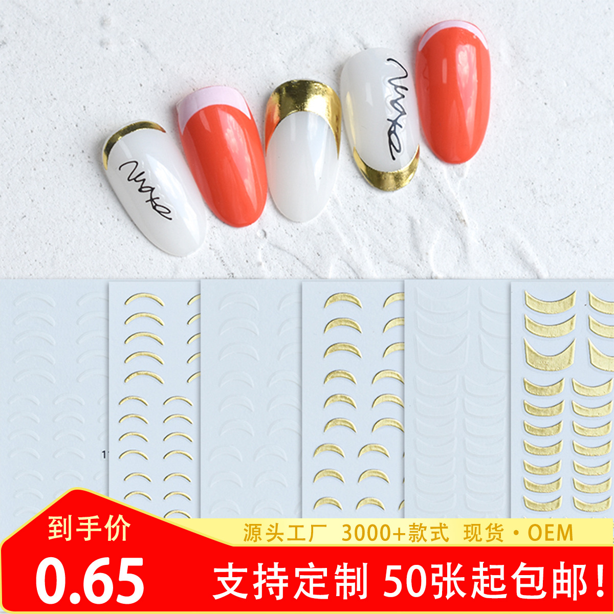 悦己美甲法式贴白色微笑弧线波浪线指甲贴纸光疗美甲工具用品现货