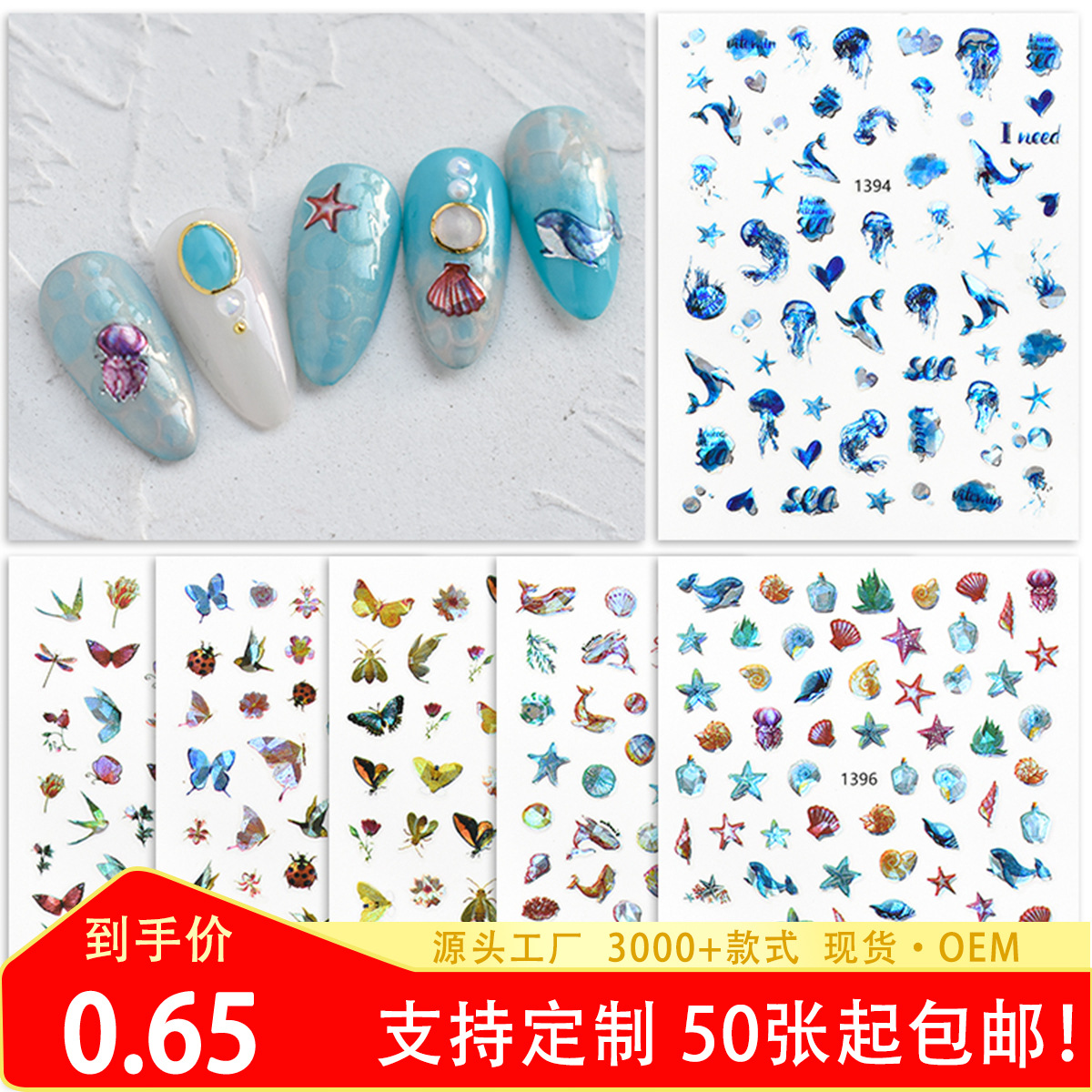 レーザーネイルシール卸売り海洋シリーズ3dネイルアップクラゲイルカ貝殻海星児童爪貼り