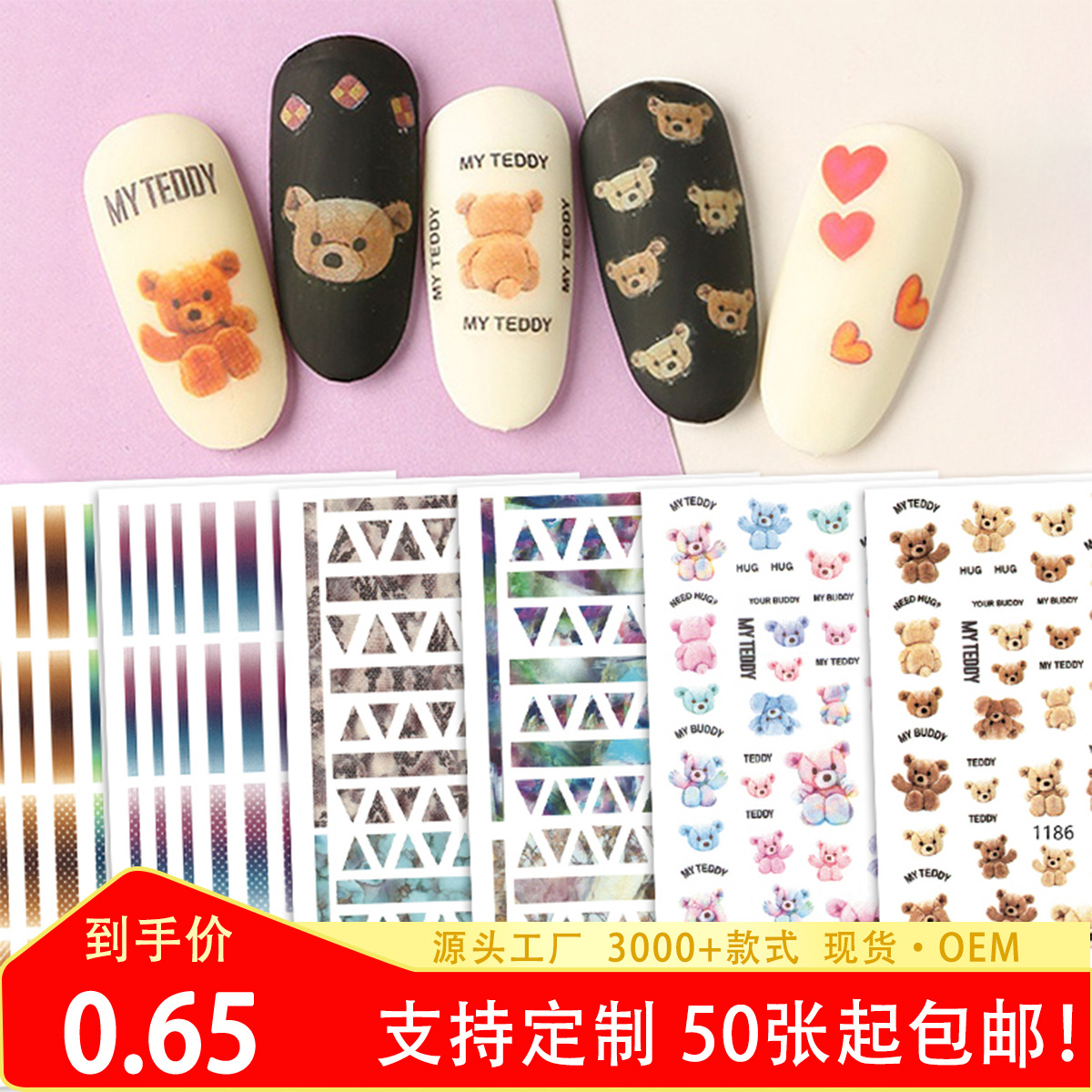 Insネイルケア熊シールカラーかわいい子供爪貼り卸売り3dバックテープ防水アルファベットデカールクロス