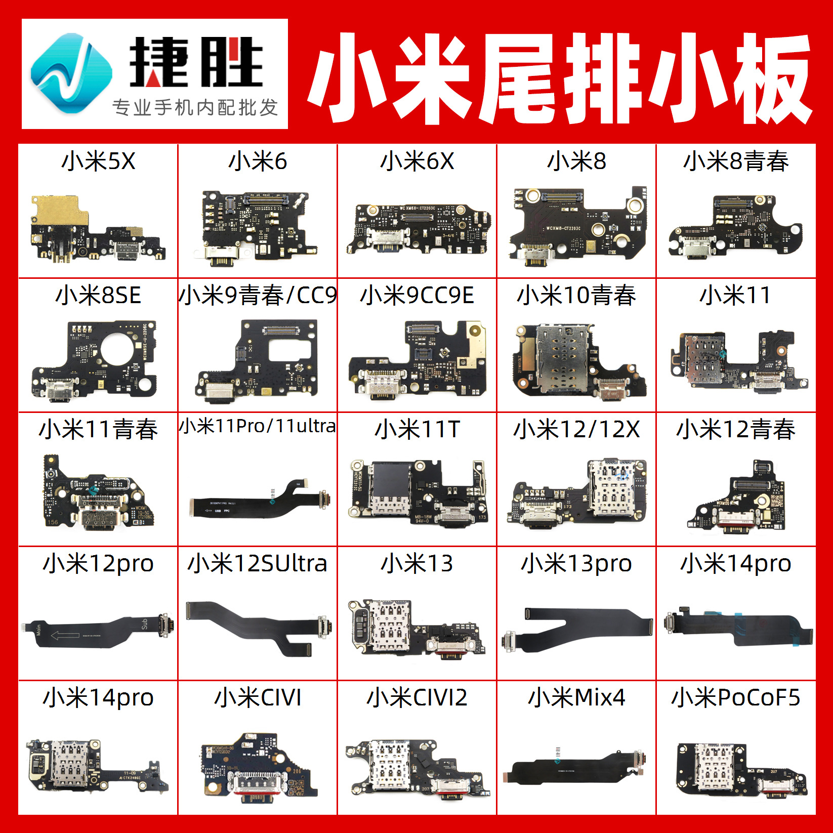 Redmi赤米K30/K30Proテールケーブル4G 5G携帯電話充電ボード接続ボードを適用します