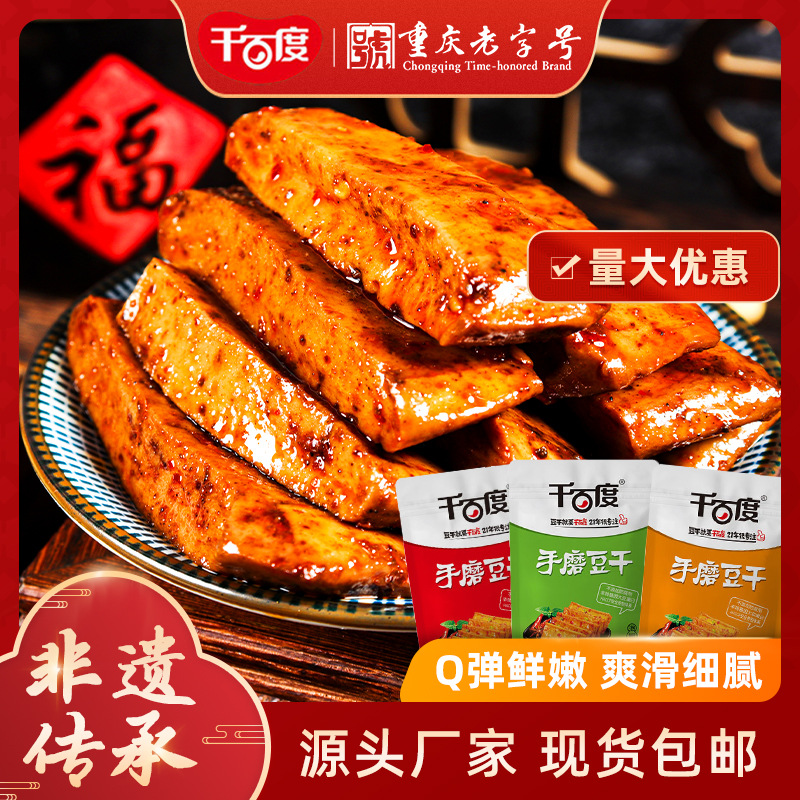Qianbaidu 手挽き干し豆腐スナック小包装スパイシー五香干し豆腐重慶名物スナック卸売