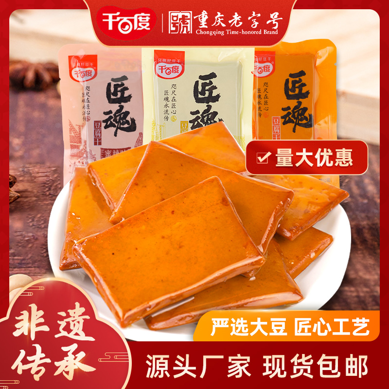 Qianbaidu Craftsman Soul Dried Beans 四川と重慶の特製食品 五香辛いブランドの干し豆腐スーパーマーケットと同じスナック卸売