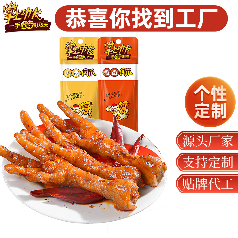 工場でカスタマイズされたハンドヘルドカンフー鶏足、インターネットセレブスナック、スーパーマーケットOEMカジュアルスナック、鶏足、鶏足