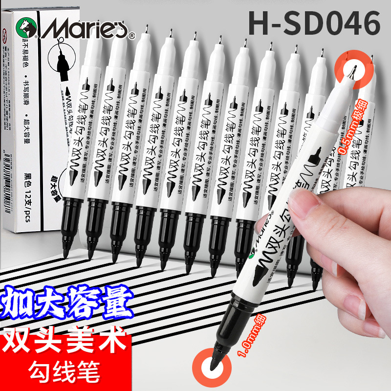 マーリー H-SD046 双頭マーカー 油性 速乾 小頭 細字マーカーペン ストローク太さ 幼稚園 黒