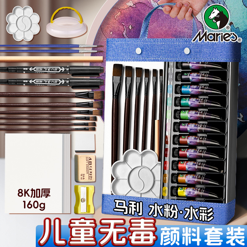 マーリー水粉絵の具セット24色36色初心者美术生専用水彩画ツールキッズ学生