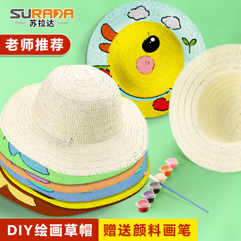 子供の麦わら帽子diyの絵画の帽子の幼稚園の絵画の塗り絵の手描きの落書きの塗り絵のアイデアの手作りの材料の包み