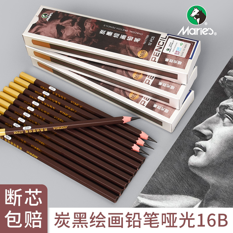 マリブランドのスケッチ鉛筆のつや消しの光の16bの炭の墨の絵画のスケッチのペンの初心者の学生は馬力の炭素のペンを使います。