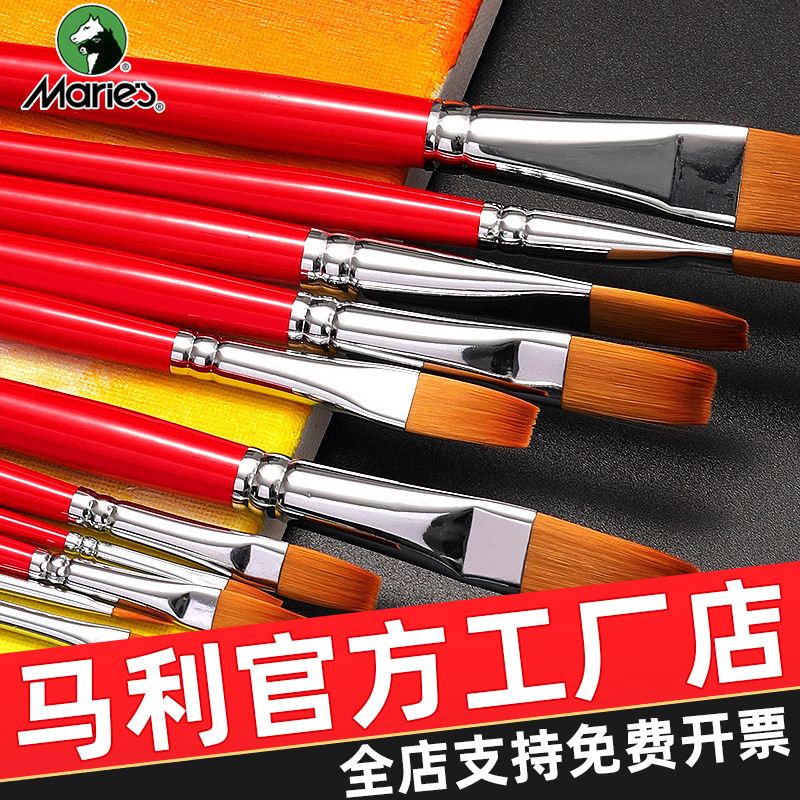 馬利牌ナイロンアクリル絵筆一本水彩絵筆水チョーク平峰ナイロン平頭ブラシ色顔料