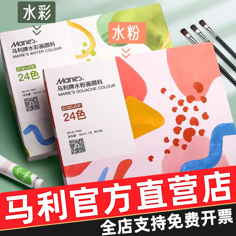マリ水彩絵の具セット12色児童絵の具初学学生用アップグレード版水粉画絵の具