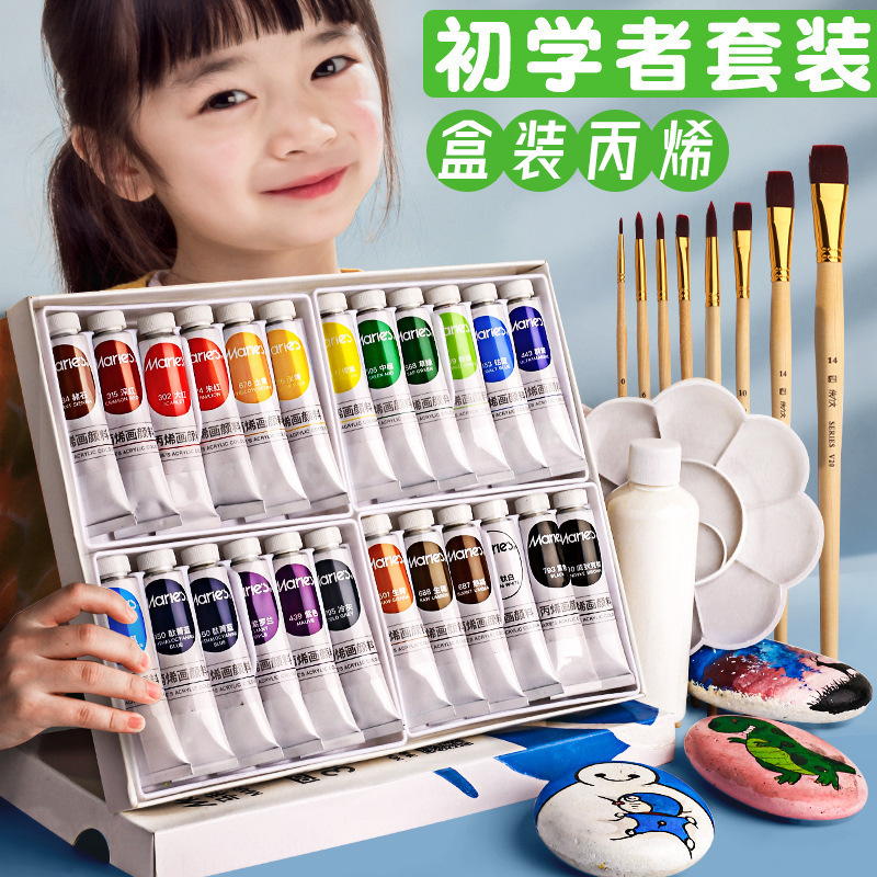 マーリー新包装24色アクリル絵の具セット子供学生小箱入り初心者染料彩色絵色落ちしない