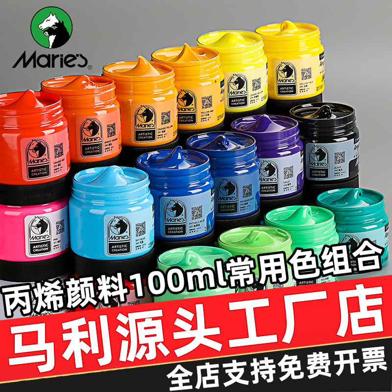 マリ100mlアクリル絵の具ボトル7色12色18色24色32色常用色セット壁絵
