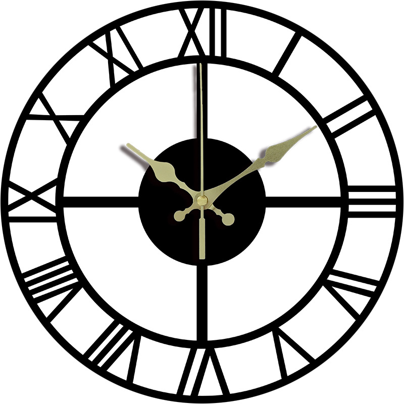 国境を越えた鉄芸ローマ数字欧米の個性シンプルな掛け時計家庭静音時計現代デザイン装飾時計