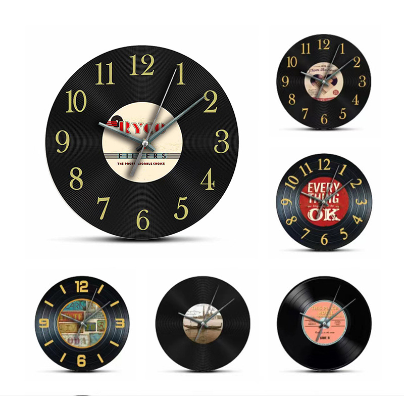 レコード黒ゴム掛け時計復古静音時計創意時計静音シンプル北欧装飾壁時計クロスボーダー人気