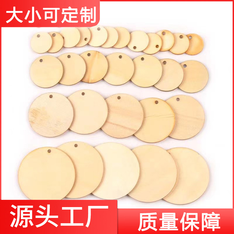 卸売り円形diy装飾木片木質穴付き小円片子供落書き色絵画薄い木片創意掛け