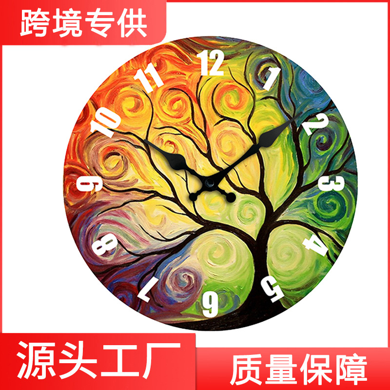Temu人気生命樹テーマ掛け時計創意北欧静音時計メーカー直販発財樹時計
